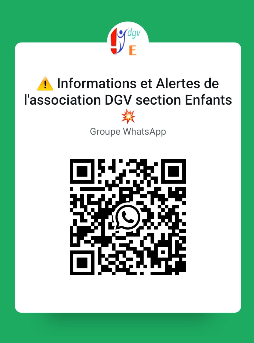 NOUVEAU !! pour rester informé et être alerté, connectez vous au groupe Whatsapp DGV Infos Enfants en utilisant le QR code suivant ou bien le lien https://chat.whatsapp.com/I7OgmKUGWUG5wkNmwTrqmj