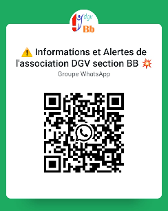 idem pour DGV Infos Bb, pour rester informé le lien est https://chat.whatsapp.com/Gl275TQudwyAKmSfh3dO65 ou le QR Code ci dessous